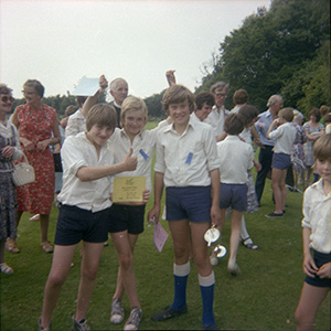 Nick's fellow students at Brocksford Hall, during 'Sports day on the bottom field: Paul BAKER | BISHOP, Gary MILLER, Tim WARDMAN | McMASTER, Paul BURKE, Simon PENTY